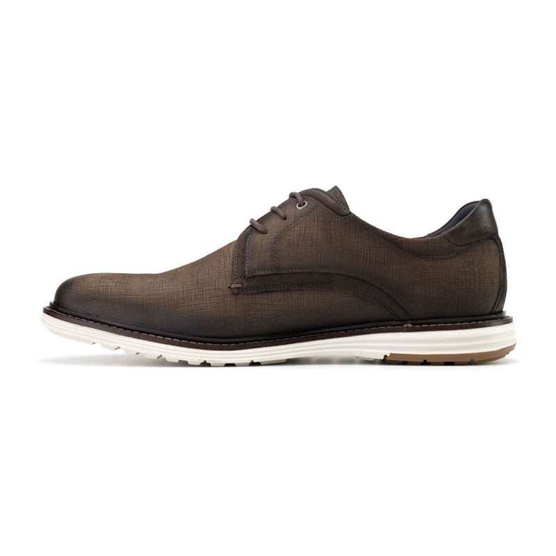 • Material Externo: Couro Nobuck • Solado: Borracha • Descrição Complementar: Modelo derby com cadarço para amarração, recortes no cabedal e couro com textura.
